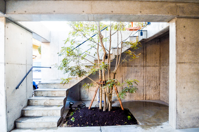 ガレージが顔。アプローチを豊かに、高台を楽しむ家